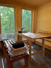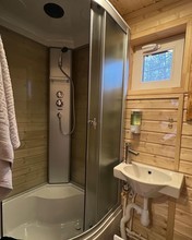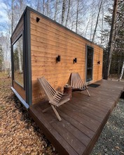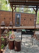 Дачи оснащены всем необходимым: полностью оборудованная кухня, двуспальная кровать, санузел с душевой кабиной, мангальная и обеденная зоны на улице.